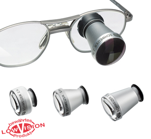 Fürs Fernsehen (TV-Sehen) und die Raumorientierung bieten kleine Fernrohre, die man in die Brille einbauen kann, eine Hilfe.